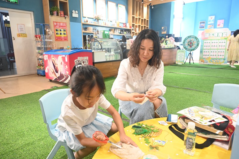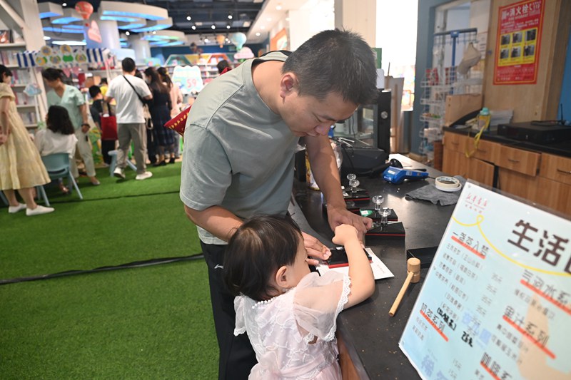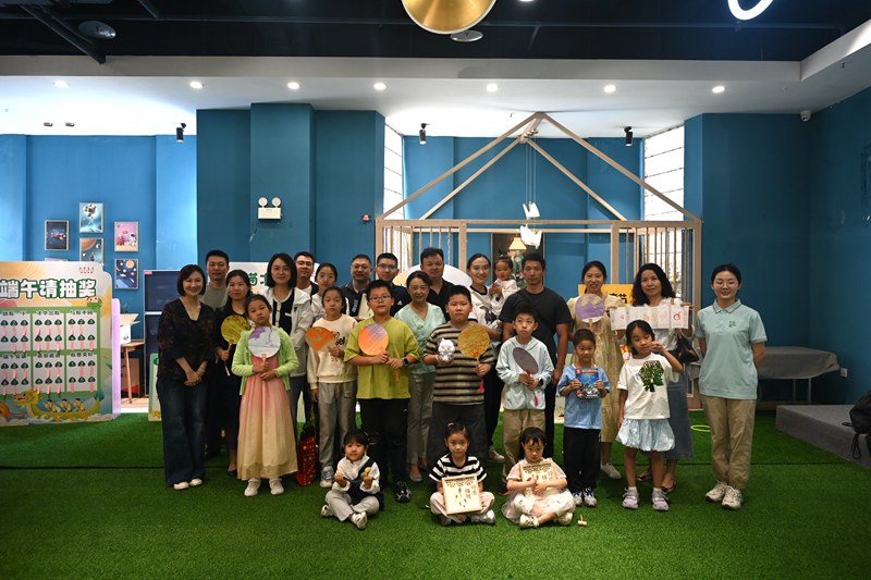 活動(dòng)現(xiàn)場(chǎng),非遺體驗(yàn)區(qū)人氣高漲。孩子們制作“非遺漆扇”,在流動(dòng)水紋中感受傳統(tǒng)技藝之美;親子家庭協(xié)作編織“竹編畫(huà)”,以竹條勾勒龍舟、粽子等端午元素。DIY區(qū)同樣熱鬧,手繪存錢罐、縫制艾草香包等環(huán)節(jié),讓創(chuàng)意與傳統(tǒng)碰撞。游戲區(qū)則設(shè)置“哪吒尋寶”“奇幻扭蛋”等趣味項(xiàng)目,結(jié)合“粽子沙包”“幸運(yùn)投壺”等傳統(tǒng)游戲,家長(zhǎng)與孩子協(xié)力闖關(guān),笑聲不斷。
