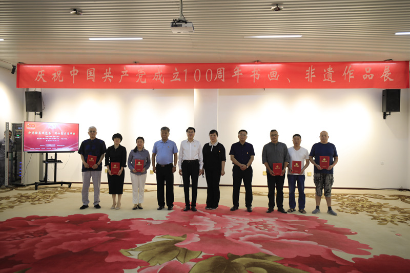“丹青翰墨頌黨恩 同心聚力寫華章——黨史學(xué)習(xí)教育系列活動(dòng)暨慶祝中國共產(chǎn)黨成立100周年書畫、非遺作品展”在我院開幕
